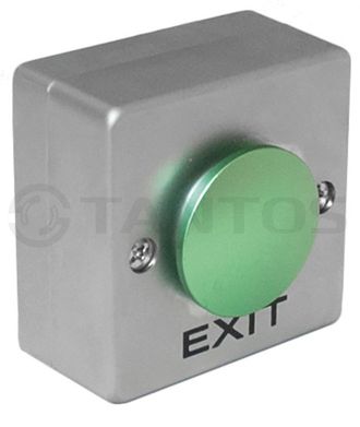 Накладная кнопка выхода квадратной формы с нажимным элементом зелёного цвета типа "грибок".