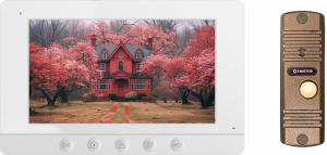 Комплект цветного HD видеодомофона, состоящий из монитора с экраном 7 дюймов с поддержкой работы с мобильным приложением vhOme 2.2 и вызывной панели