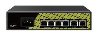 PoE коммутатор 4x100 Мбит/с PoE порта (3 порта 802.3af/at, максимальная мощность PoE 30Вт на порт, 1 порт 802.3af/at/bt, максимальная мощность PoE 60Вт на порт) + 2x100 Мбит/с порта Uplink, общий бюджет PoE 60 Вт, автоматический PoE watchdog, автоматический выбор длины линии и скорости работы (до 130м скорость 100Мбит/с, от 130м до 250м скорость 10Мбит/с), встроенный блок питания, грозозащита и защита от статического электричества, от -30°С до +60°С.